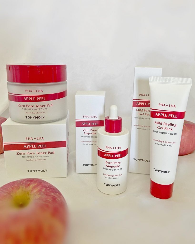 TONYMOLY ?PHA+LHA APPLE PEEL 零毛孔系列? 蘊含新一代去角質成分 – PHA及LHA,可以改善油脂分泌過剩,刺激程度低,敏感肌或孕婦??都適用。另含有蘋果果膠複合物,可以徹底潔淨毛孔,護理毛孔堵塞及收緊毛孔鬆弛。