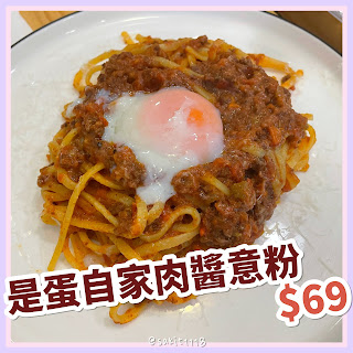 >>是蛋自家製肉醬意粉 $69